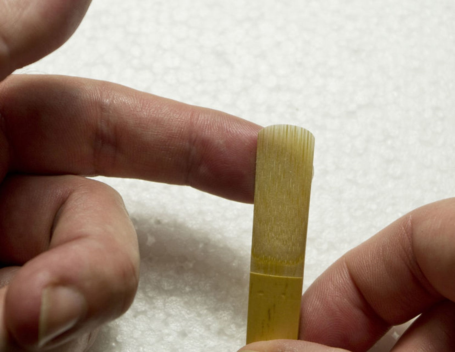 Visually, check that the tip of the reed has been cut symmetrically and there are no splits or other damage by gently running your finger along the underside tip of the reed...